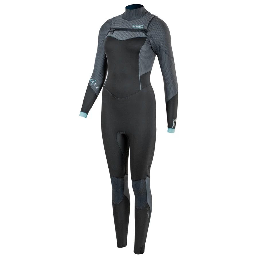 The Prolimit flare free zip wetsuit for women is completely new in our collection this year. It is a high quality wetsuit and because of the 5mm neoprene, perfect for colder conditions. The suit has neoprene with airflex which makes it a very warm but still very flexible suit. The seams are triple glued and blind stitched, which means that the seams are watertight . Compared to the flare steamer this suit has a free zip (a zip that has to be attached at the front) for easy access.